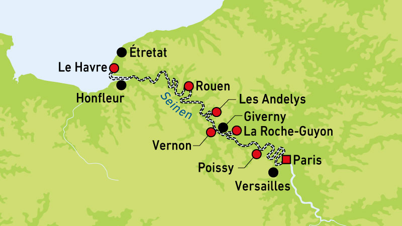 På cruiset fra Paris til Normandie får vi oppleve regionens rike kulturarv som gjenspeiles i både kunst, arkitektur og tradisjoner. Utflukter i land gir deg muligheten til å utforske pittoreske landsbyer, historiske byer, fortryllende hager og kjente severdigheter. Enten du spaserer langs de elegante avenyene i Paris, besøker viktige landemerker eller nyter en kaffe på en liten fortauskafé, får du på denne turen et innblikk i fransk livsstil og kultur. La deg rive med, og ikke bare av kjærlighetens by – Paris, men også vakre Normandie.