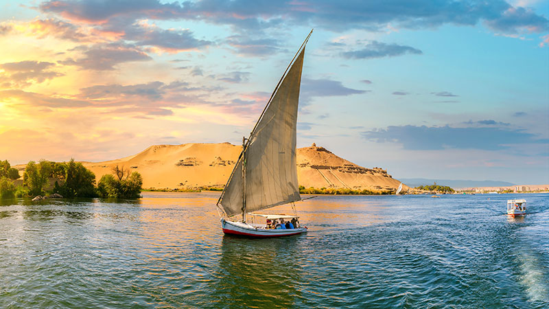 Etter frokost skal vi på båttur med en felukka. En felukka er en tradisjonell, flatbunnet seilbåt som har vært brukt på Nilen i tusenvis av år. Deretter sjekker ut av hotellet og drar til flyplassen. Om ettermiddagen flyr vi fra Luxor til Kairo, hvor vi skal bo én natt på et flyplasshotell.