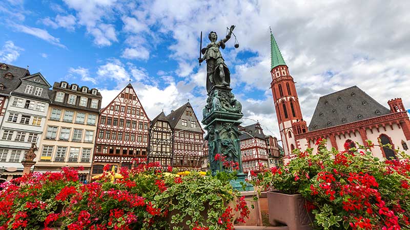 - Frankfurt, en by med både moderne skyskrapere og bindingsverkshus